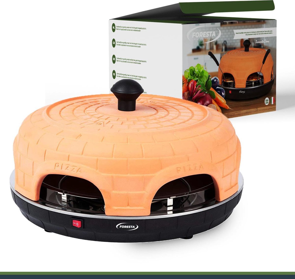 Ben je klaar voor gezellige avonden vol plezier en heerlijk eten met vrienden en familie? De Foresta® Pizzaoven brengt jouw culinaire creaties naar een hoger niveau. Binnen enkele minuten bak je je eigen mini pizza's alsof je een professionele chef bent. Met ruimte voor tot 6 personen is er altijd genoeg gelegenheid voor een smakelijk uitje thuis!